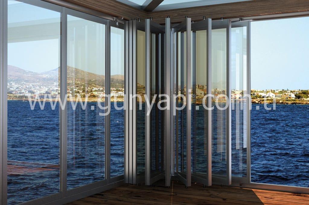 Katlanır Cam Balkon sistemlerinden yeni tasarımı ve gelişmiş aksesuarları ile 4 mevsim hava şartlarına uygundur.